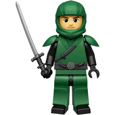 Green ninja Lloyd garmadon blonde hair, kaptur hoody on his head but blonde grzywka visible; the bottom left one is best (the one without miecze + black band + no mask of face) but add miecz; I want no band on head ; I don’t want any band on forehead emoji