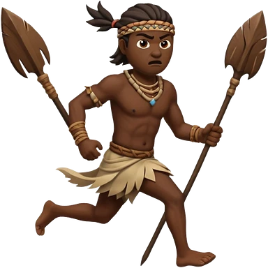 an angry tribal man holding a spear and running left emoji