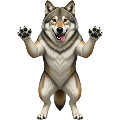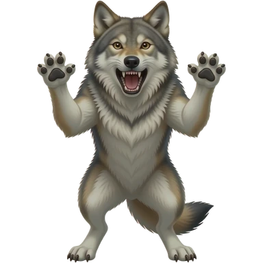 lobo con la boca abierta enfadado con las garras pero que tenga 2 patas y que este de pie emoji