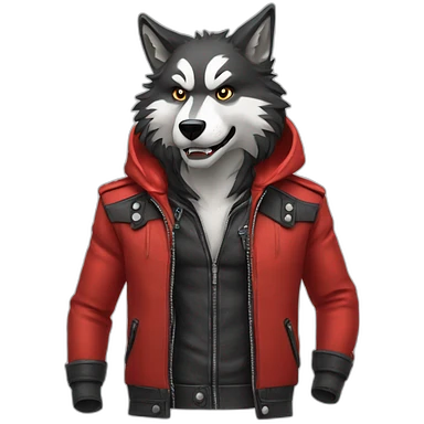 lobo como campera roja, pelo lacio y ojos verdes emoji | AI Emoji Generator