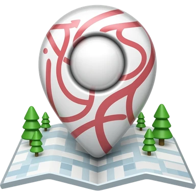 Emoji of a red location pin on a small folded map, iPhone emoji style. Flat design, smooth gradients, rounded edges, soft shadows, clean look, white background emoji