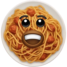Eating yellow sausage with yellow meatballs and whitesauce emoji
