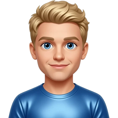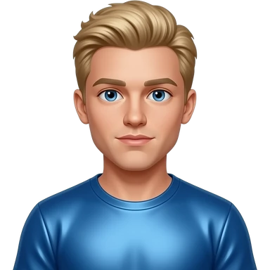 Logan Paul with blue eyes, blonde hair, blue metallic t-shirt emoji