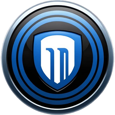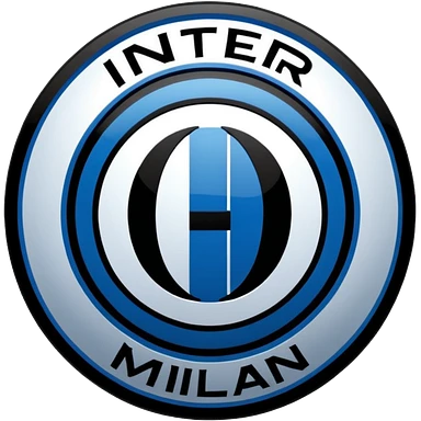 the old Inter Milan football club logo, circular design with blue and black stripes, gold accents, stylized IMFC monogram emoji
