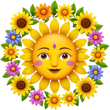 Logo of Madhu Gupta written on the sun surrounded by flowers emoji