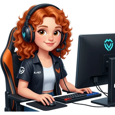 Fille rousse bouclés tâches de rousseur Esport emoji