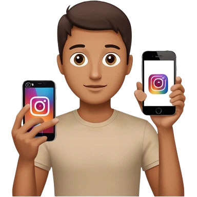 A man in frontal view holding up an iPhone toward the camera. The screen of the iPhone clearly displays the Instagram logo, brightly illuminated. The man is well-lit, sharp focus, modern clean background, high-resolution, professional aesthetic. emoji