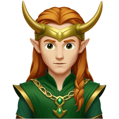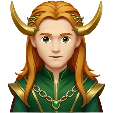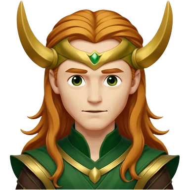 Loki, God of Mischief from Gods and Goddesses with long reddish blonde hair, gold and dark green outfit emoji