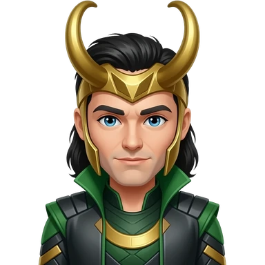 marvel's loki dressed in a grey suit and green tie with loki's golden horns emoji