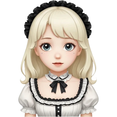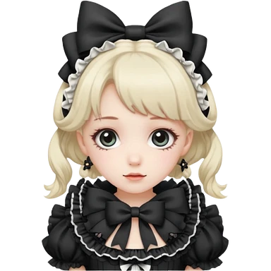 lolita fashion girl, blonde hair with pigtails tied with bows, japanese emoji