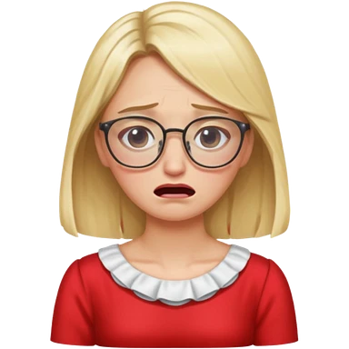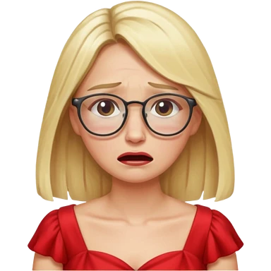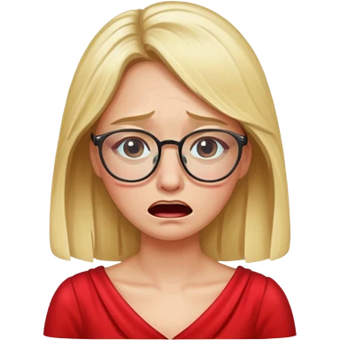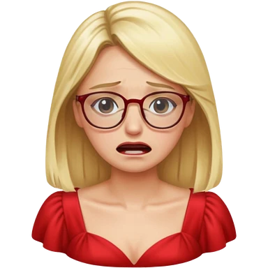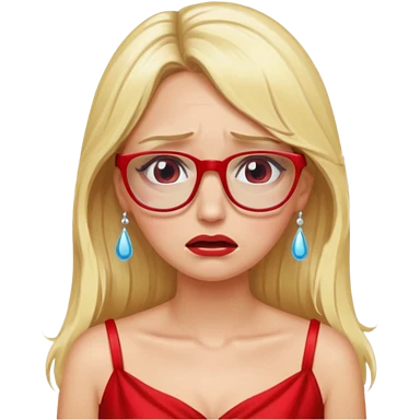 lomg blond woman crying with glasses with red party wear dress emoji | AI Emoji Generator