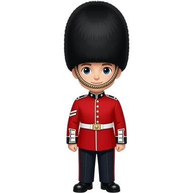 Cute British royal guard in red uniform with iconic tall black hat, London palace style emoji