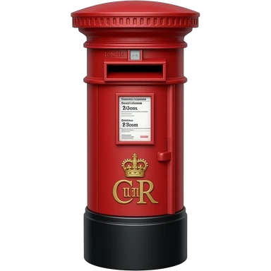 Traditional British pillar post box, isolated, centered, no background, no street, no scenery, no text, deep royal red, small crown emblem, iconic London street symbol emoji