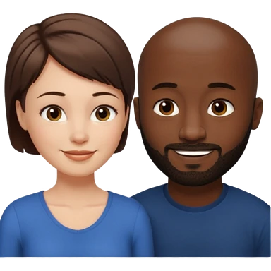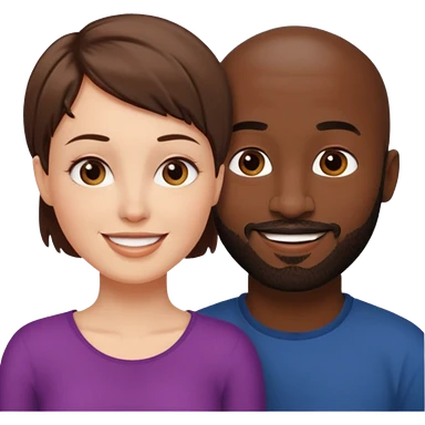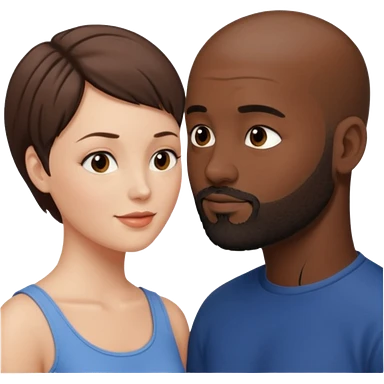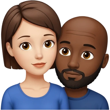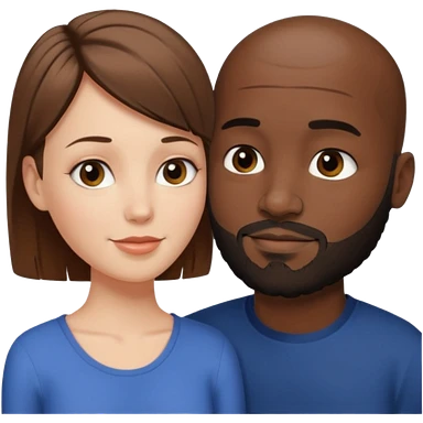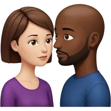 a white woman with short brown hair and a black man with no hair and a beard are looking at each other lovely emoji