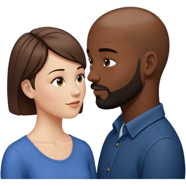 a white woman with short brown hair and a black man with no hair and a beard are facing one each other and looking at each other lovely emoji