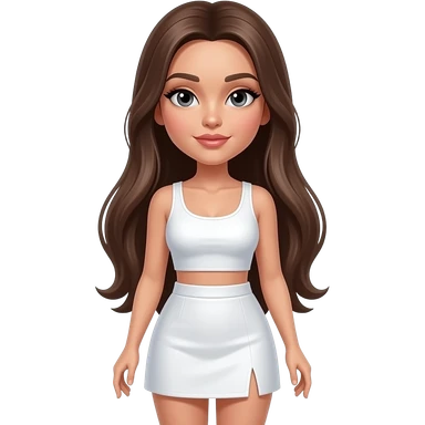 I want her hair is long and brown straight and shes not fat and she have eyeliner and shes beutiful also make her wearing a white crop top and short skirt emoji