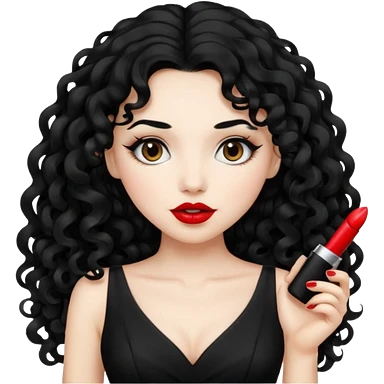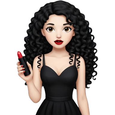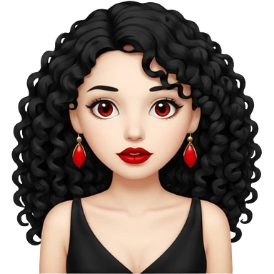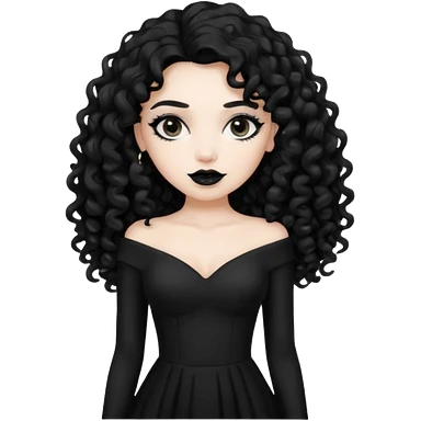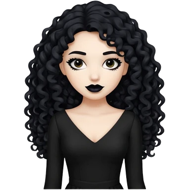 long black curly hair with white skin black dress and black lipstick emoji | AI Emoji Generator