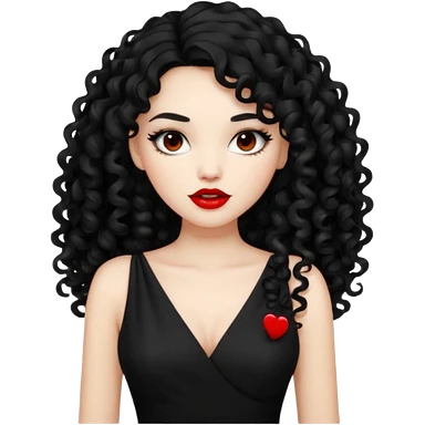 light skin girl with very long black curly hair, brown eyes, wearing a black Chanel dress emoji