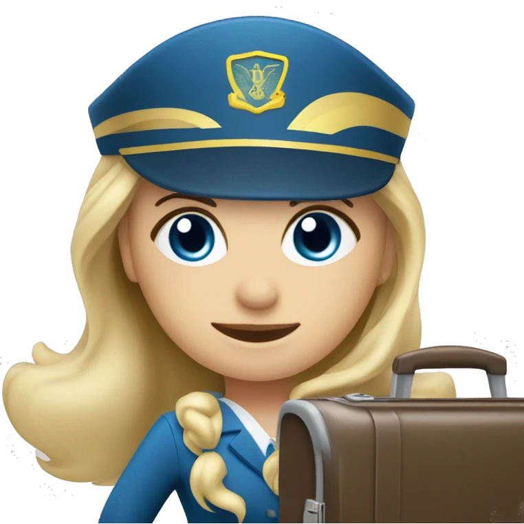 long blonde hair blue eyed girl flight attendant holding suitcase emoji | AI Emoji Generator
