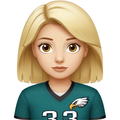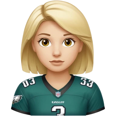 blonde female hazel eyes football player wearing eagles jersey number 33 emoji