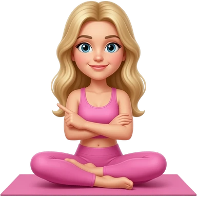 long blonde haired woman gesturing "No" arms crossed in front of her. wearing a pink yoga outfit. emoji
