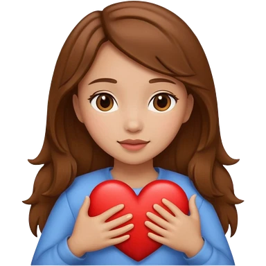 Long Brown hair smiling girl light skin, heart hug emoji | AI Emoji Generator
