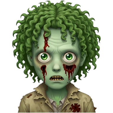 long curly haired male zombie with brown hair color and green eye color, with dark vampire clothes emoji | AI Emoji Generator