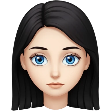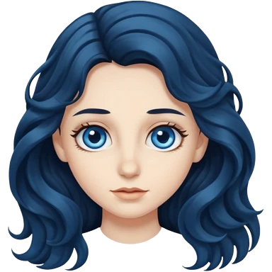 Beautiful woman, white skin, big eyes, blue eyes, dark hair, long hair, wavy hair emoji