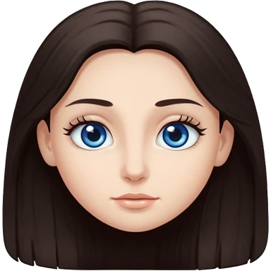 long dark brown hair with big blue eyes and long dark eyelashes round face emoji