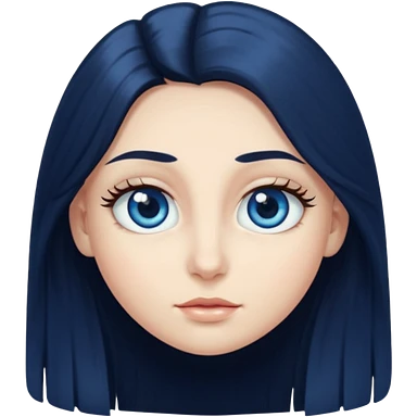 long dark hair with big blue eyes and long dark eyelashes round face emoji | AI Emoji Generator