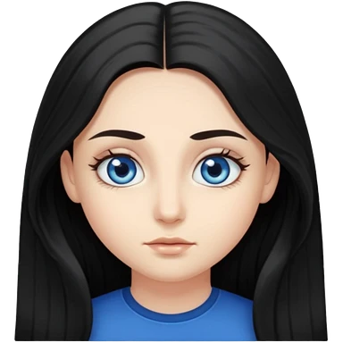 long dark hair with big blue eyes and long dark eyelashes round face emoji