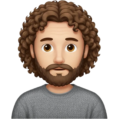 long curly hair bearded man sweater emoji