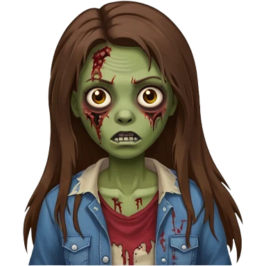 a zumbi girl with long brunette straight hair and light brown eyes emoji