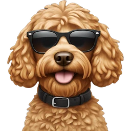 Ginger cockapoo planning with a miniature Schnauzer emoji
