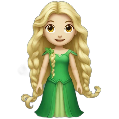 Complete Fairy with long blond hair and green long dress with wand in her hand emoji
