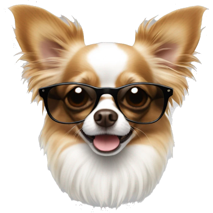 Long haired chihuahua white with reddish brown with black sunglasses emoji | AI Emoji Generator