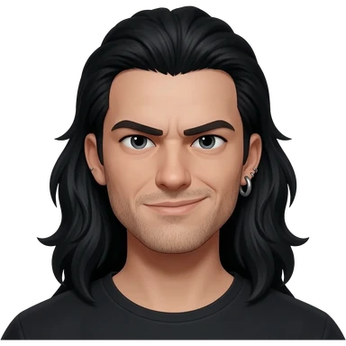 Long, flowing black hair, an ear gauge/plug, and a calculated, condescending smirk. emoji