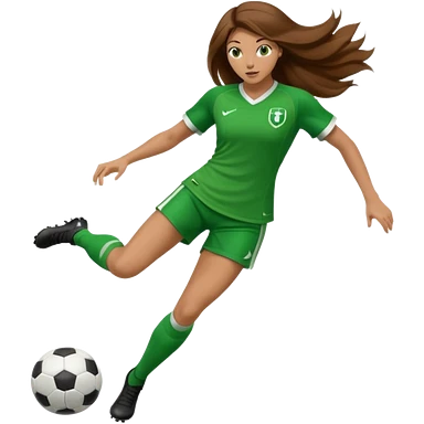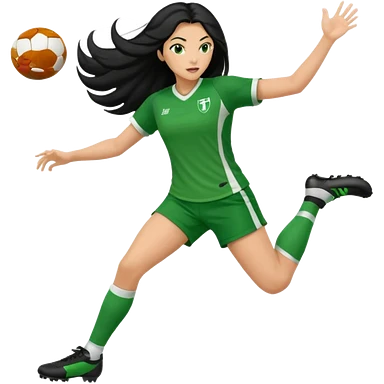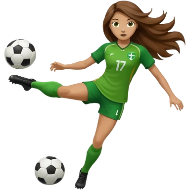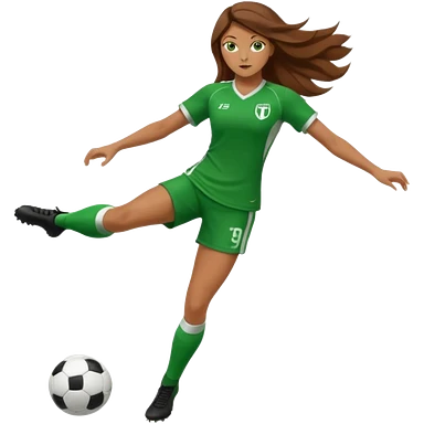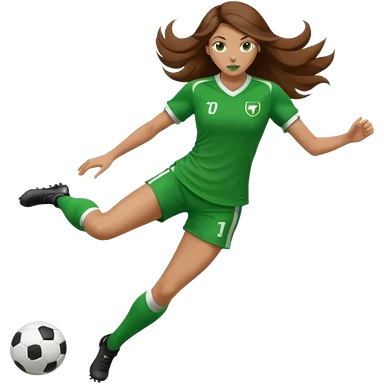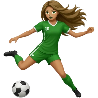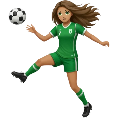 Long Haired Football Players, Female player, green cloth, full body kick ball emoji