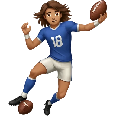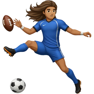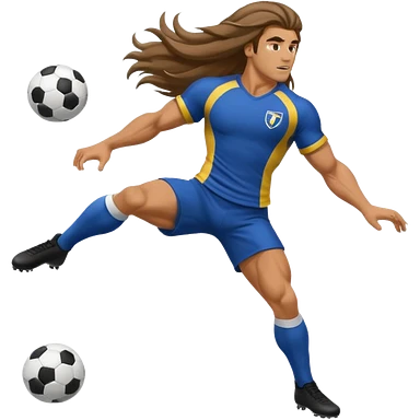 Long Haired Football Players, Male player with long hair kicking ball emoji | AI Emoji Generator