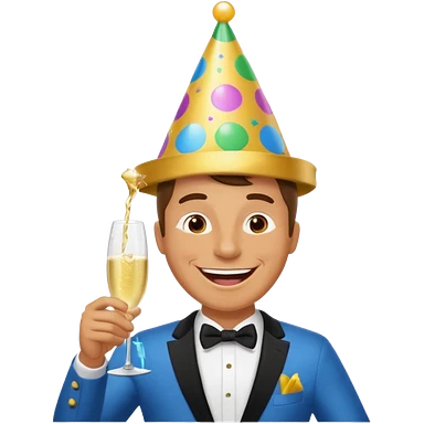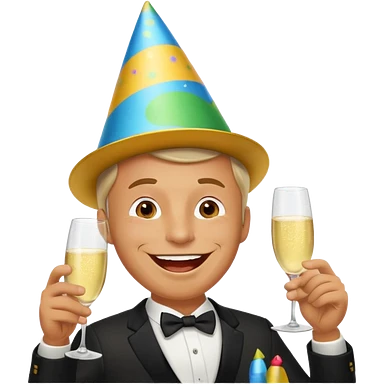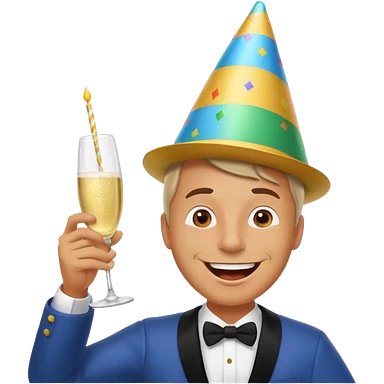 Frog in a tuxedo wearing a birthday hat and drinking champagne emoji