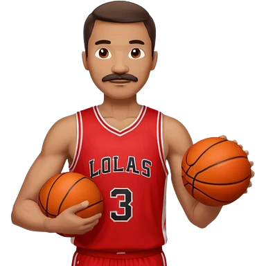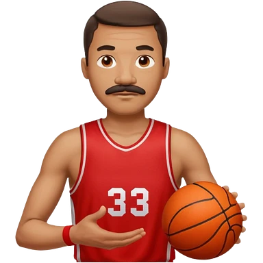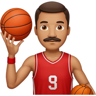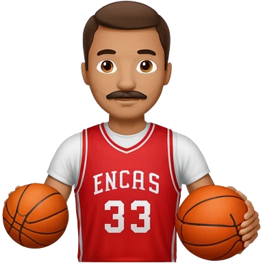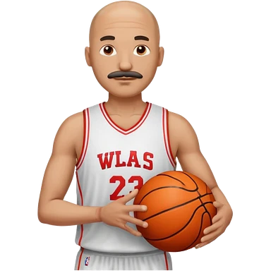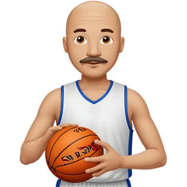 bald man basketball player white jersey with mustache holding basket ball emoji