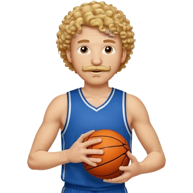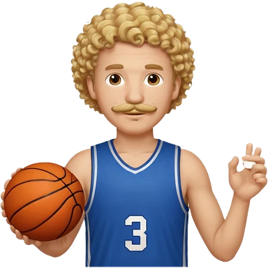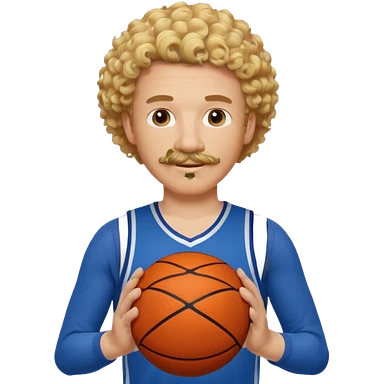 white blonde curly hair man basketball player blue jersey with mustache holding basket ball emoji