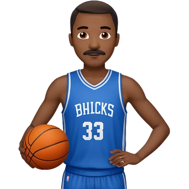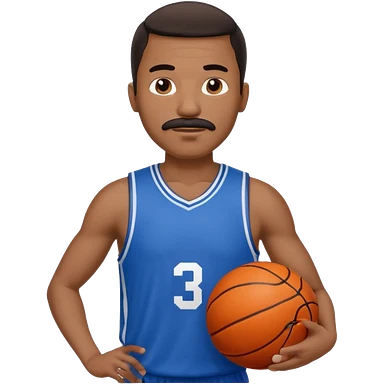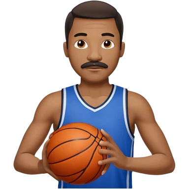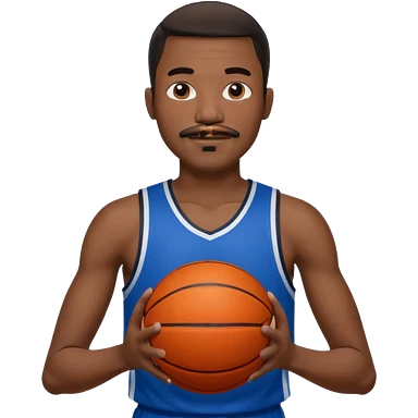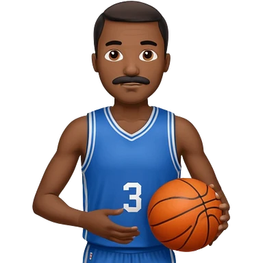 black man basketball player blue jersey with mustache holding basket ball emoji