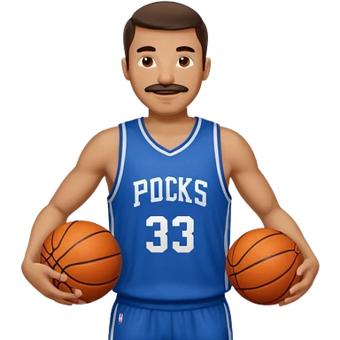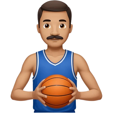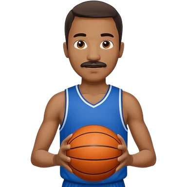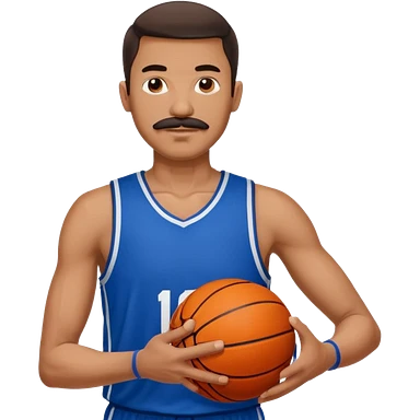 bold man basketball player blue jersey with mustache holding basket ball emoji