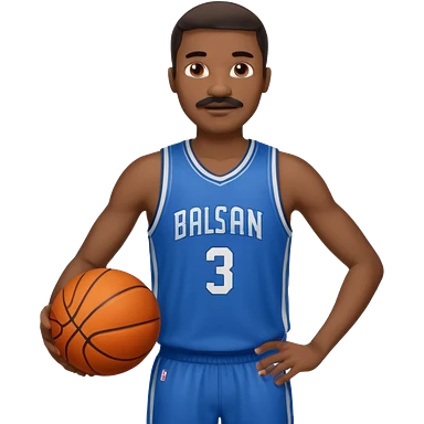 black bold man basketball player blue jersey with mustache holding basket ball emoji