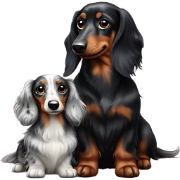 Long-haired merle dachshund with small one emoji | AI Emoji Generator