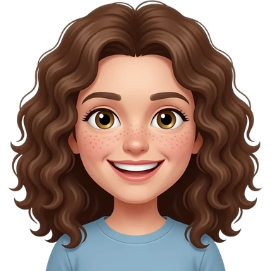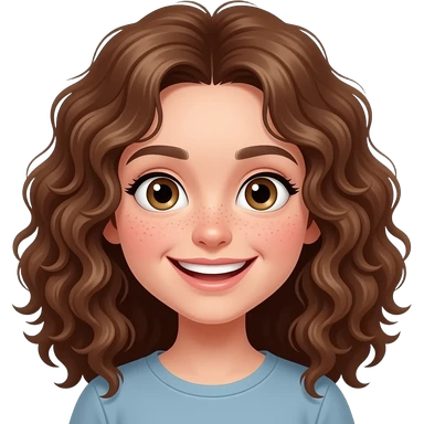 Brown hair wirh curls with a bif creepy smile with freckles girl emoji