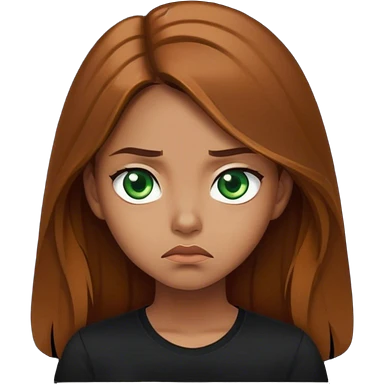 Girl with Green eyes Brown Long Hairs caramell Skin and a black Shirt she Looks annoying emoji