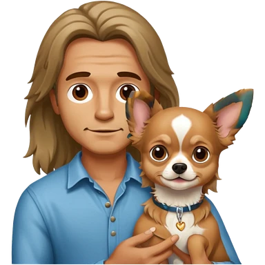 long harired man with dog chihuhaha emoji | AI Emoji Generator