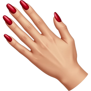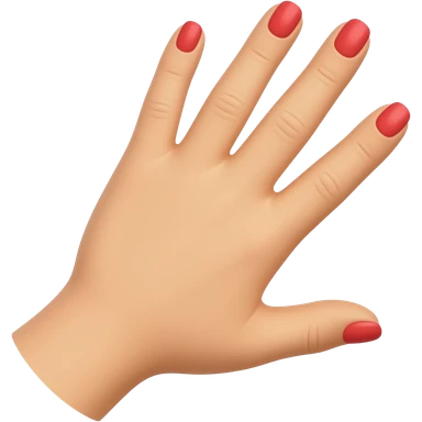 long acrylic fingernails pink nail polish, palm of hand, fingers folder over showing nails emoji